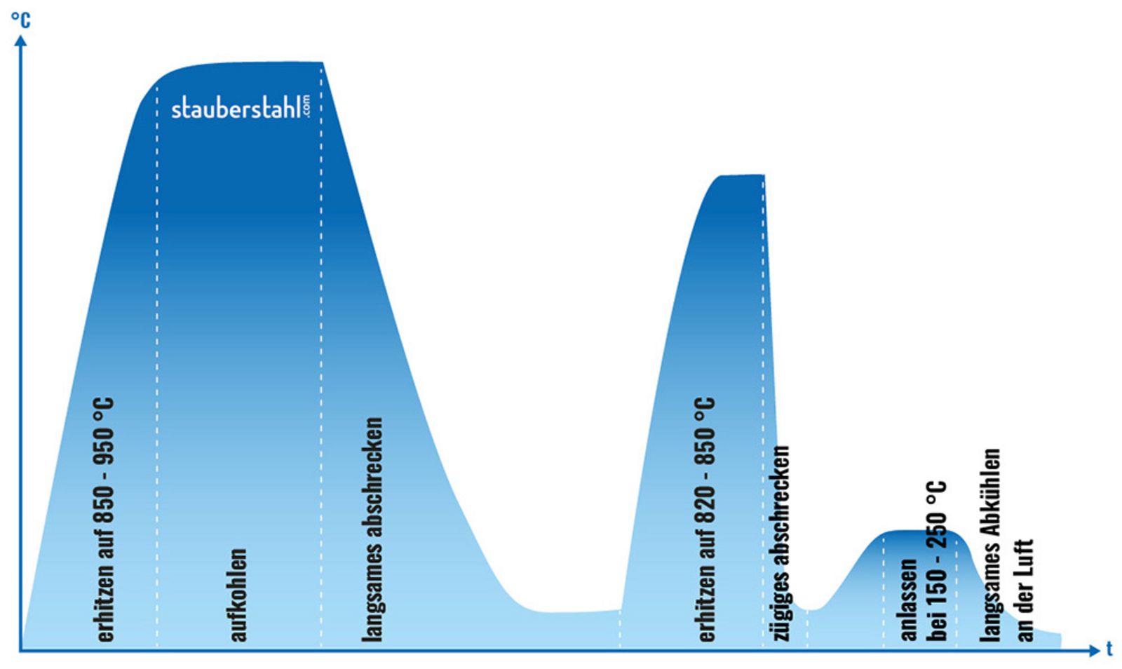 Die niedrige Temperatur liegt jedoch unterhalb der Austenitisierungstemperatur, weshalb keine Gefügeumwandlung stattfindet und kein Abschrecken nötig ist.